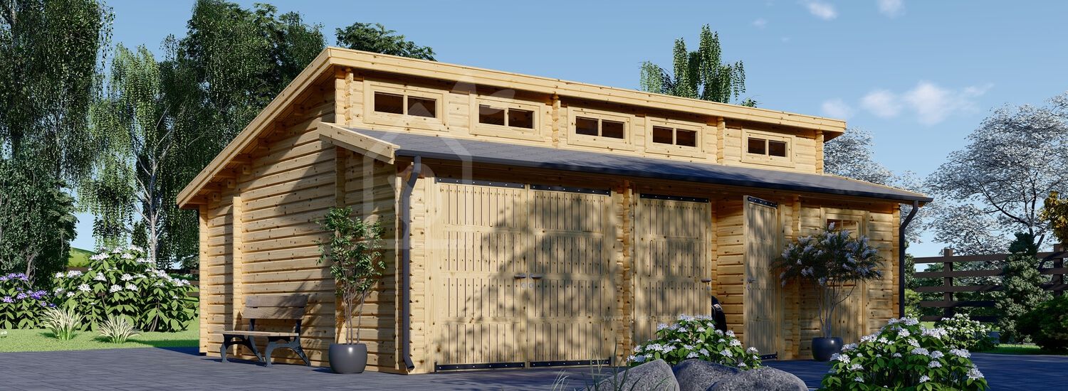 Double Wooden Garage TWIN DUO (44 mm), 8x6 m (26'x20'), 48 m²