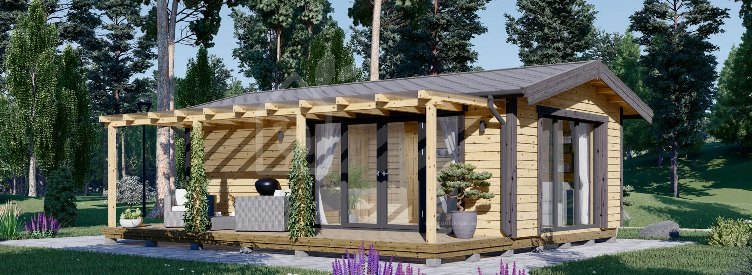 The classic DIANA model should be on your radar if you're looking for a comfy yet practical space for your family to live in, be it the older family members or the younger ones. The structure is stunning and everyone is welcome under the double-pitched roof. DIANA also features a 16 m² living room with space for a kitchenette for lounging and intriguing conversations, plus a bedroom right next to it. It's also important to note that this model is planning permission friendly due to the mobile home construction. For your utmost convenience, an insulated version of this model is available is available as well.