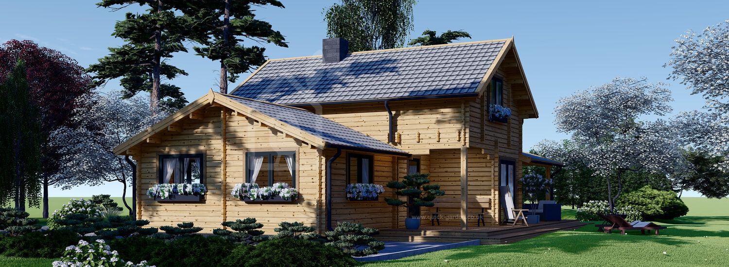 Log Cabin House HOLLAND (44+44 mm + Insulation), 113 m² With 13 m² Terrace