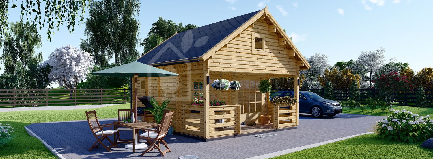 Log Cabin ALBI (44 mm), 5.6x5m (18'x16'), 20 m² With 8 m² Terrace