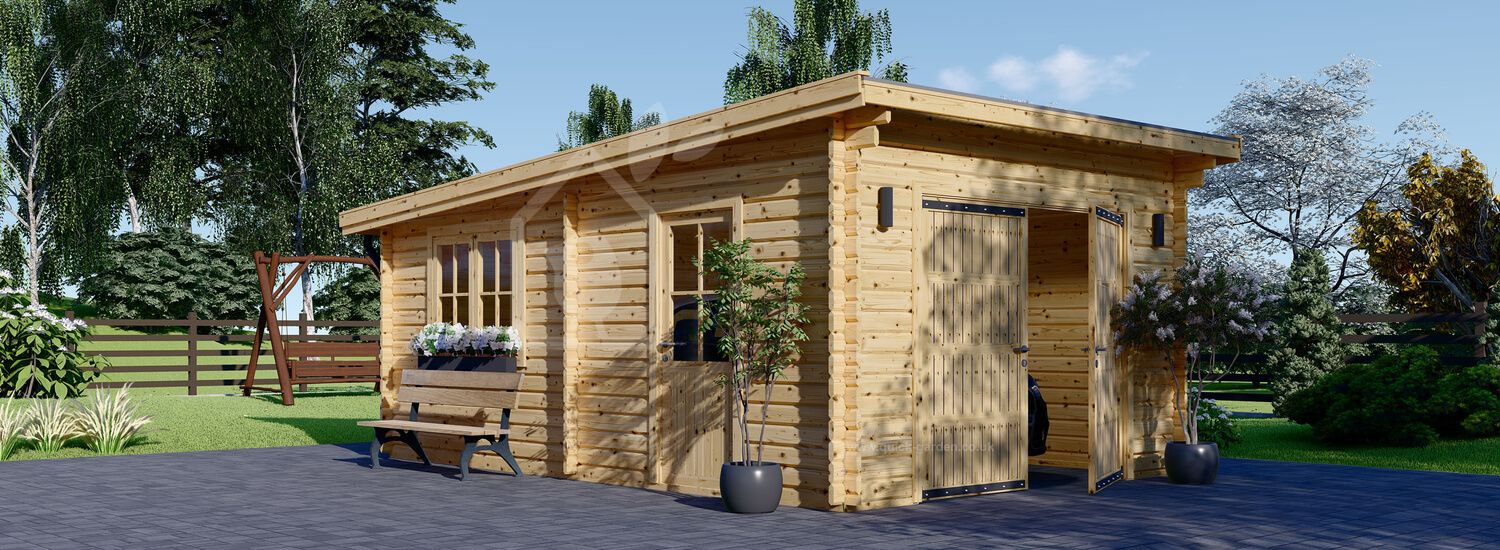 Elevate your daily routine with MODERN – a single wooden garage designed for more than just a convenient place to park your car! This garage has a contemporary look due to its low slope roof and inviting little details. MODERN is not a garage building that you're going to want to forget about once you're done using it. This new purchase will draw you in, and you'll find yourself coming back for more – either to decorate it, bring in a new chair or put a bench outside, or simply repair your car with a hot cup of tea on a small table next to it.