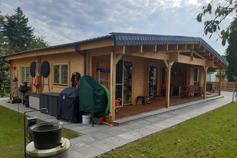 After the kids grew up, our client Lothar and his wife Doris started thinking about selling the large family house and moving into a more compact living space. The family explored various options until they found the classical wooden house RIVIERA to transfer their entire life into. A matching wooden garage 4x6 m was selected to fulfil their vehicle storage needs and become a practical workshop space. Finding the right land for building the house took some years; however, it was all worth it, as this journey led our customers to a large, beautiful garden full of old fruit trees. Our customer Lothar has shared that the key elements that the family was looking for were the size of the house and its aesthetic appearance, as well as the flexibility of the supplier to respond to customer r… (More) -