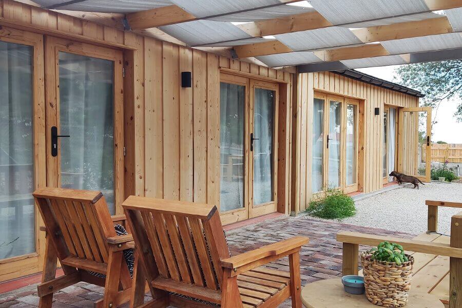 A residential cabin and a couple of camping pods for a family business in Saint-Eulien, France