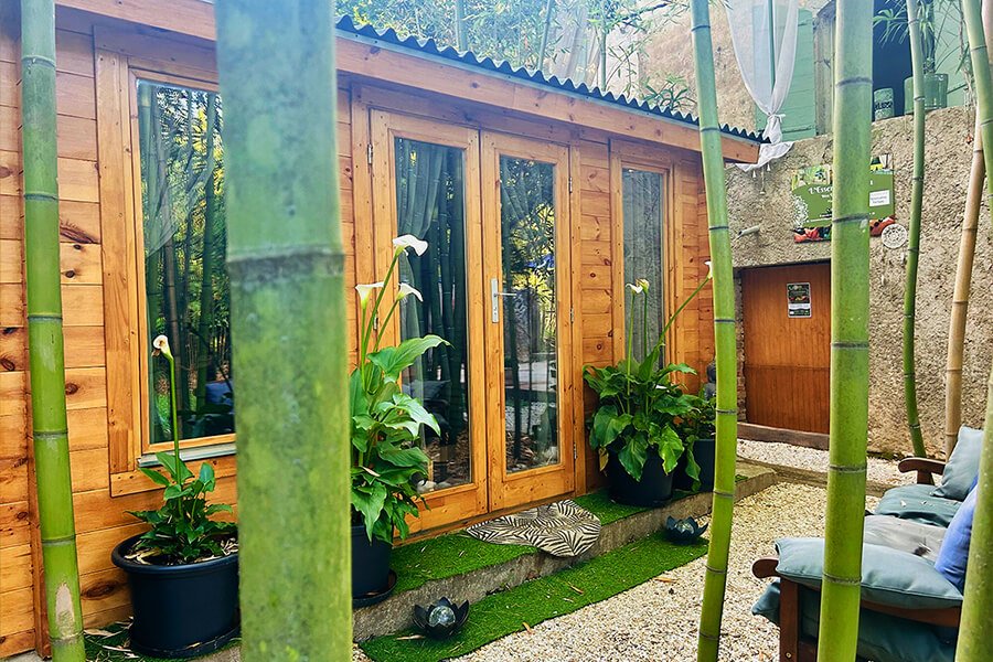 A more unique take that also makes a lot of sense – that’s how we’d describe Aurélie’s idea of creating a spa amongst a sea of breathtaking greenery. Let us introduce the wellness center "L'Essence Bambou", created by using our insulated 12 m² garden cabin POOLHOUSE. This compact and light structure helped Aurélie execute her idea perfectly, and now she enjoys the great customer reviews she receives consistently. While you revel in the beauty of the following pictures, maybe you’ll get some ideas of how our models can be incorporated into different environments – not just gardens or backyards! Looking for the right fit Upon getting to know how "L'Essence Bambou" came about, Aurélie revealed that… (More) -