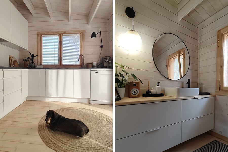 An insulated two-bedroom cabin with a cosy living room could become a perfect place of residence for a family with kids. Also, a great option for elderly grandparents, who love having their grandchildren over and comfortably spending time together, to reside next to the main house.