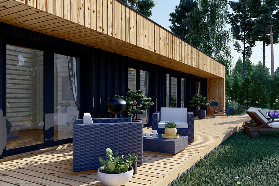 To sum up, contemporary wooden houses bring out the best of both worlds: eye-catching minimalistic design and a timeless wooden build. The slow-grown conifer timber, in combination with the solid wooden construction, guarantees numerous cosy years in your selected structure. Inhaling the fresh conifer timber smell while lounging in a spacious modern structure provides undeniable freshness and excitement to one’s surroundings.