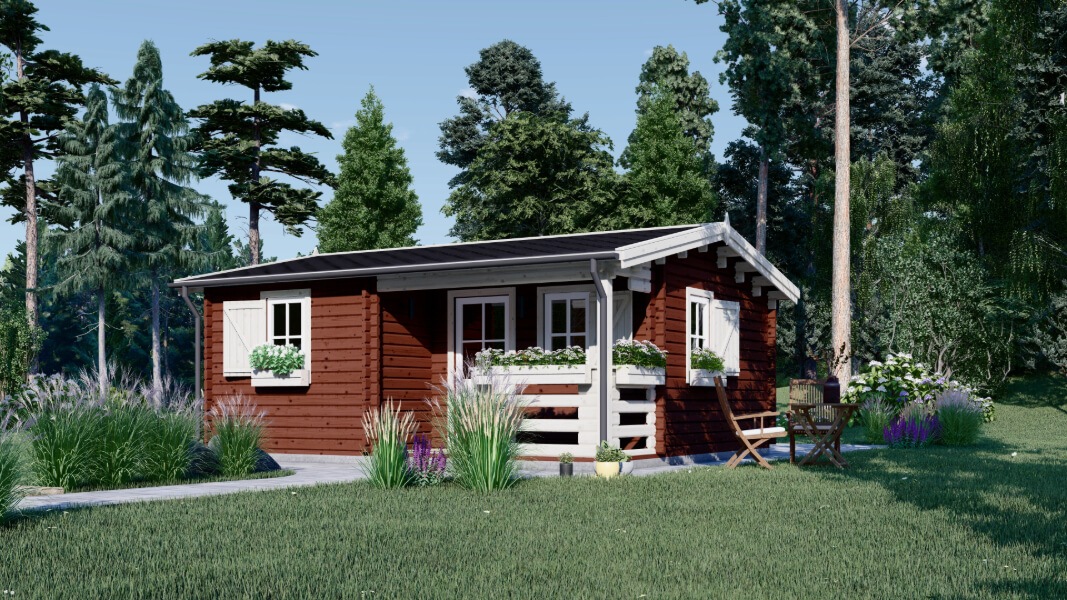 Let’s start with STRONGHOLD – an 18 m2 classic structure that’s more on the simple side design-wise, which means it’s versatile enough to become anything you like. For example, some potted plants could frame the entrance from both sides, the wood could be painted a rich brown, and so on. A dreamier choice to create the rustic look would be NANTES, which sports a cute covered terrace. We’re sure the cosy appearance paired with the 3 room layout will inspire many garden room ideas.