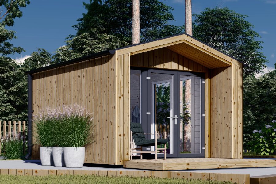 TINA range is a lovely choice for those who adore a more contemporary look – the stylish vertical cladding, large windows, and doors offer exceptional cosiness. A nice bonus that comes included with this model is a covered terrace, allowing you to spend more time outdoors, enjoy the greenery and have some business calls or spend time with friends.