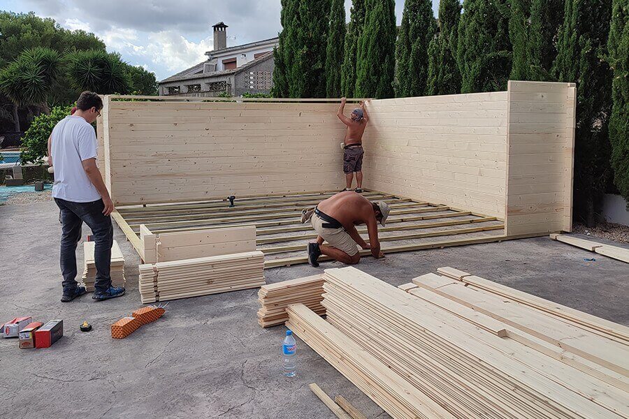 Image: Assembly team building a wooden garden room MIA from Quick-garden.co.uk | Customer story