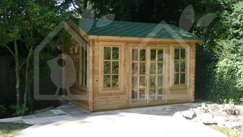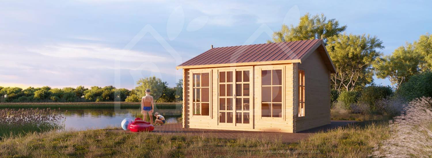 The minimum base needed for the cabin is 384cm X 284cm. The total area required for its installation is 12 square metres, and the roof area is 15 square metres. The roof overhang area is 10cm. The external dimensions are 400cm (width) X 300cm (depth). The height of the eaves is 213cm, while the height of the ridge is 249cm. The walls have a thickness of 44mm each.