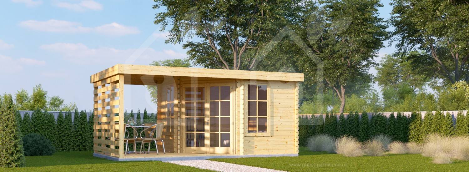 The comfort offered by the Summer House Sunflower is not just limited to its interiors. The overhang of its vertical roof provides shade on the outside as well, meaning you can sit under it and relax on a lazy summer afternoon. The high quality Scandinavian spruce or Nordic pine gives the log cabin a rustic look making it appear more natural and elegant. The glass panes in the windows and doors are 4mm thick ensuring that insulation is maintained. No plastic component is used in this cabin and it is made entirely of premium quality material. The cabin is constructed using tongue and groove boards for the roof and floor, which are included in the quoted price.