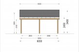 Double Wooden Carport LUNA DUO With L-shape Wall 6x6 m (20'x20')