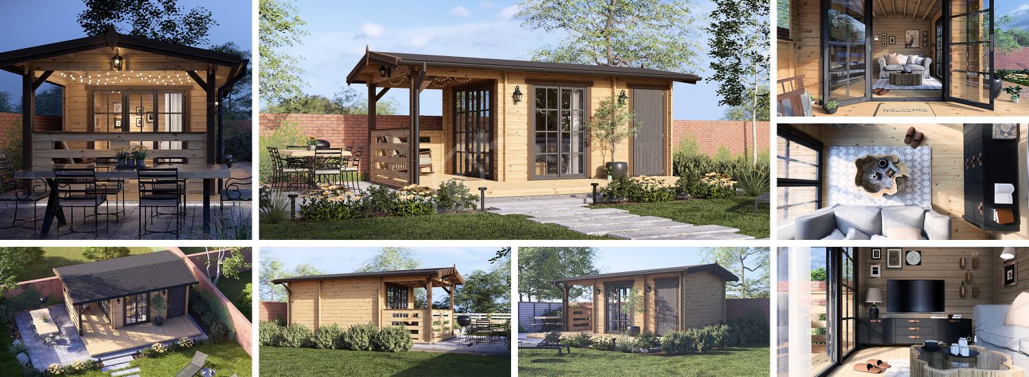 Garden Log Cabin LILI with a shed (34 mm), 6x3 m (20'x10'), 11 m²