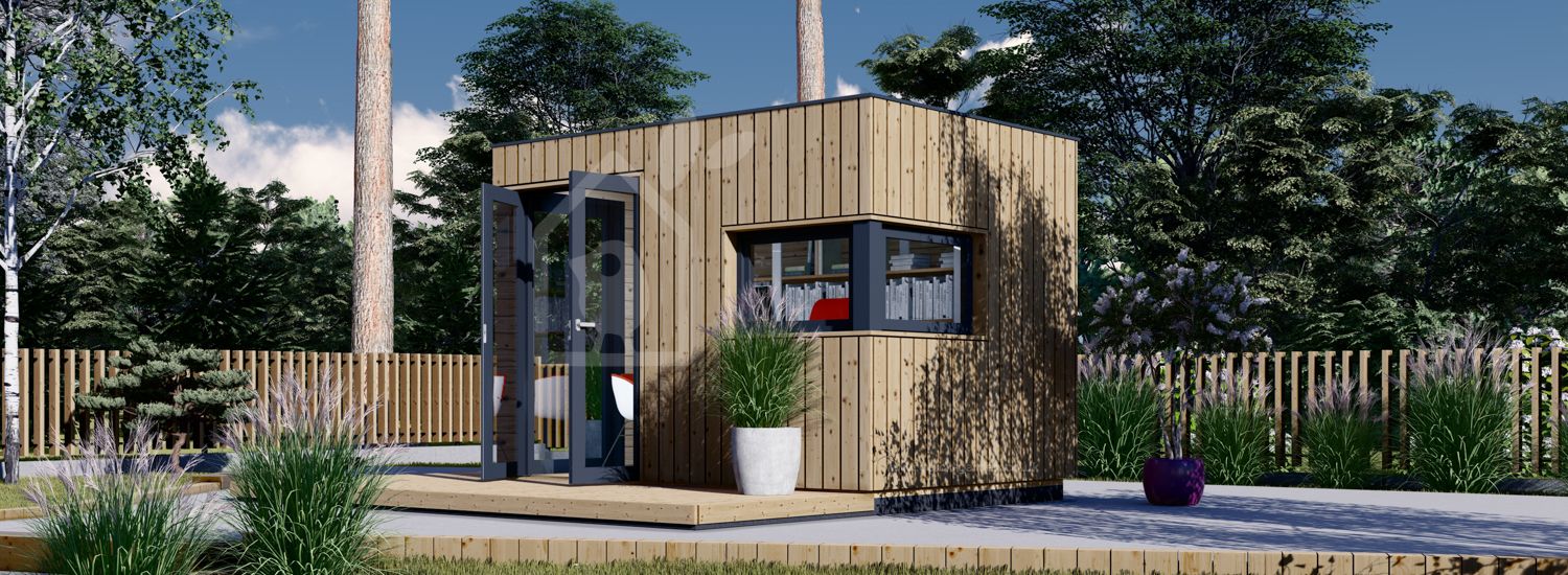 If you're looking to set up a private office space in your garden, this compact model should be one of the best options to consider. It features stylish vertical cladding, takes up only 6 m² of space, and has a smooth finish accentuated by the modern flat roof. You'll find that the double entrance door and the window next to it offer easy access and a great view, however, there's an additional window in the corner too, which will provide even more light to your days.