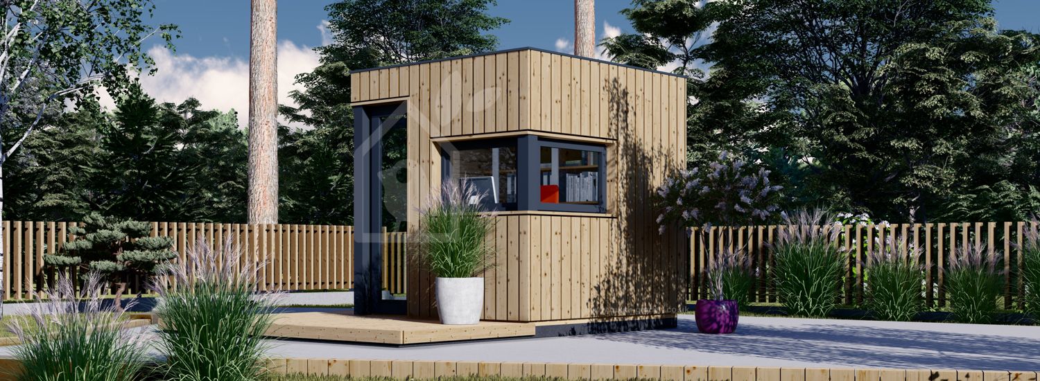 If you're looking to set up a private office space in your garden, this compact model should be one of the best options to consider. It features stylish vertical cladding, takes up only 4 m² of space, and has a smooth finish accentuated by the modern flat roof. You'll find that the glass entrance door and the window next to it offer easy access and a great view, however, there's an additional window in the corner too, which will provide even more light to your days.