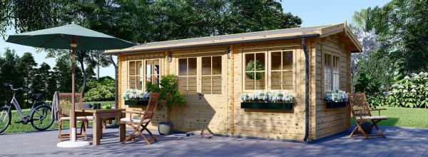 Compact, cosy and bright wooden cabin OAK, featuring classic design and form, could be a superb choice for a garden relaxation oasis or a summerhouse for shorter stays. Large windows optically extend the internal space and make this cabin a prime lounging spot. Enjoy the full potential of your garden by placing this lovely structure in your backyard!