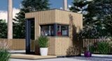 Compact and minimalistic wooden cabin ESSEX S could become a cosy and functional addition to your backyard! This cabin could be used for various purposes: become a comfortable lounging room in the garden, a remote working room, storage space or a studio for your hobby. This specific model does not have the floor included in the price.