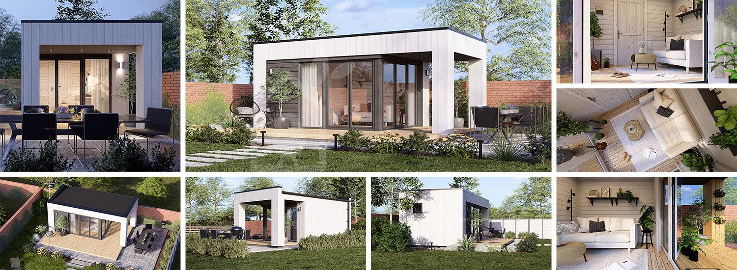 <p>Would you like to see your garden in a new light? Consider INES PLUS, which was created with the idea of quiet luxury in mind. The layout provides spaces to gather or freshen up, as the two separate rooms can accommodate comfortable furniture and other necessities. What is more, the covered terrace can help you create an even cosier atmosphere. In INES PLUS, the food and drinks will be tastier, the company more satisfied, and the time better spent! For your utmost convenience, an <a href="https://www.quick-garden.co.uk/garden-room-ines-plus-with-terrace-insulated-34-cladding-6x3-m-20x10-18-m2-3.html">insulated version of this model</a> is available as well.</p><br> <p><strong>Cedral click and horizontal cladding exterior</strong></p> <p>This prefabricated wooden house features contemporary style white Cedral Click exterior cladding made of fiber cement – a composite of cement, cellulose fibers, and mineral materials. This type of cladding is appreciated for its exceptional strength, stability, moisture & fire-resistance properties, and exquisite aesthetic appeal. Most of the exterior is constructed with cedral click, while the rest features modern horizontal cladding, adding a touch of colour variety.</p>