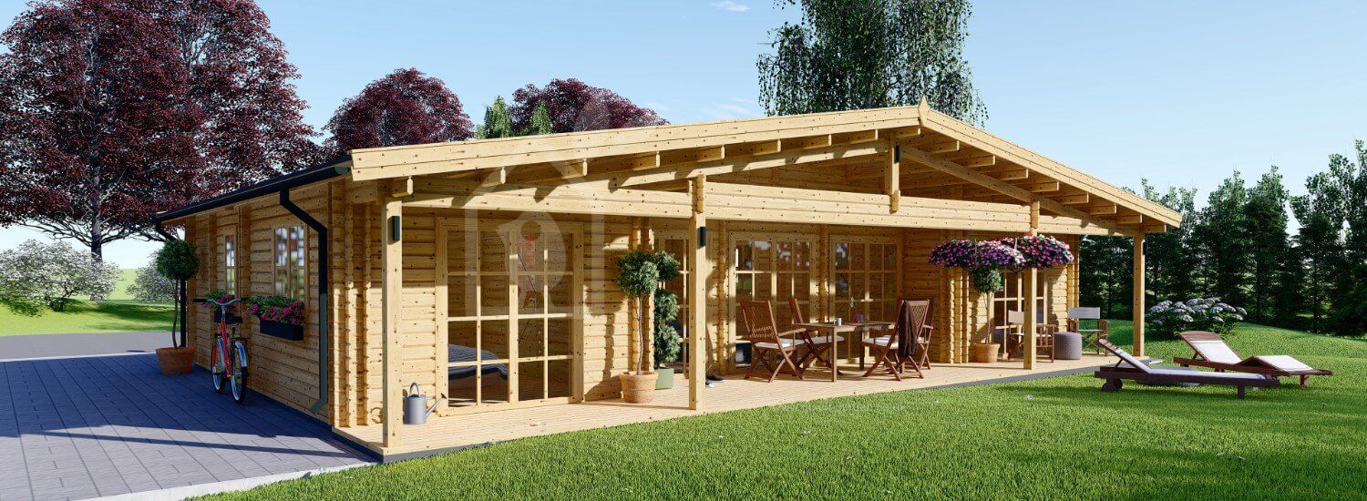 Log Cabin House RIVIERA (44+44 mm + Insulation), 100 m² + 20 m² Terrace