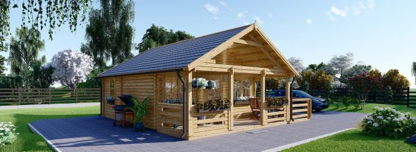 Residential Log Cabin ANGERS (Insulated PLUS, 44 + 44 mm), 36 m² + 19 m² Terrace