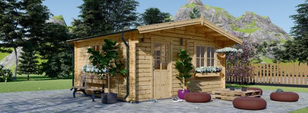 Our lovely garden cabin NINA matches all the aesthetic elements of a classical style, picturesque wooden cabin. This highly functional square-spaced structure will look delightful in the corner of your backyard and invite you to cosily spend time inside. Whether you decide to use it as a relaxation area for resting between gardening activities, a living room extension for your friend gatherings, a guest room or a home gym, this budget-friendly model has lots to offer! For your utmost convenience, an insulated version of this model is available as well.