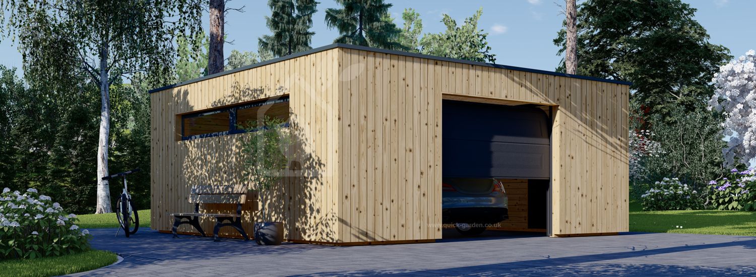 Single Wooden Garage With Flat Roof SILVIA F (34 mm + Cladding), 6x6 m (20'x20'), 36 m²